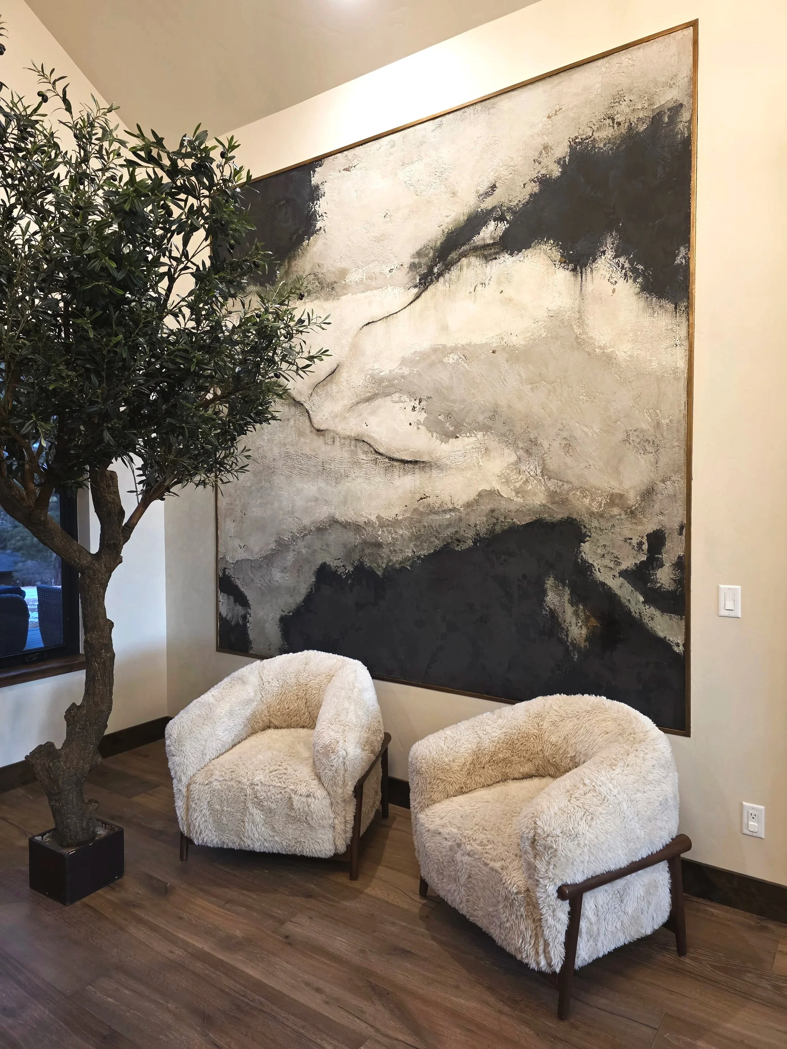 We create original works both as independent pieces and through private commissions for those seeking something truly singular. Whether selected from our evolving body of work or developed specifically for your space, each piece is approached with a focus on material, scale, and atmosphere—resulting in artwork and interior elements that feel deeply considered, quietly striking, and entirely one of one.